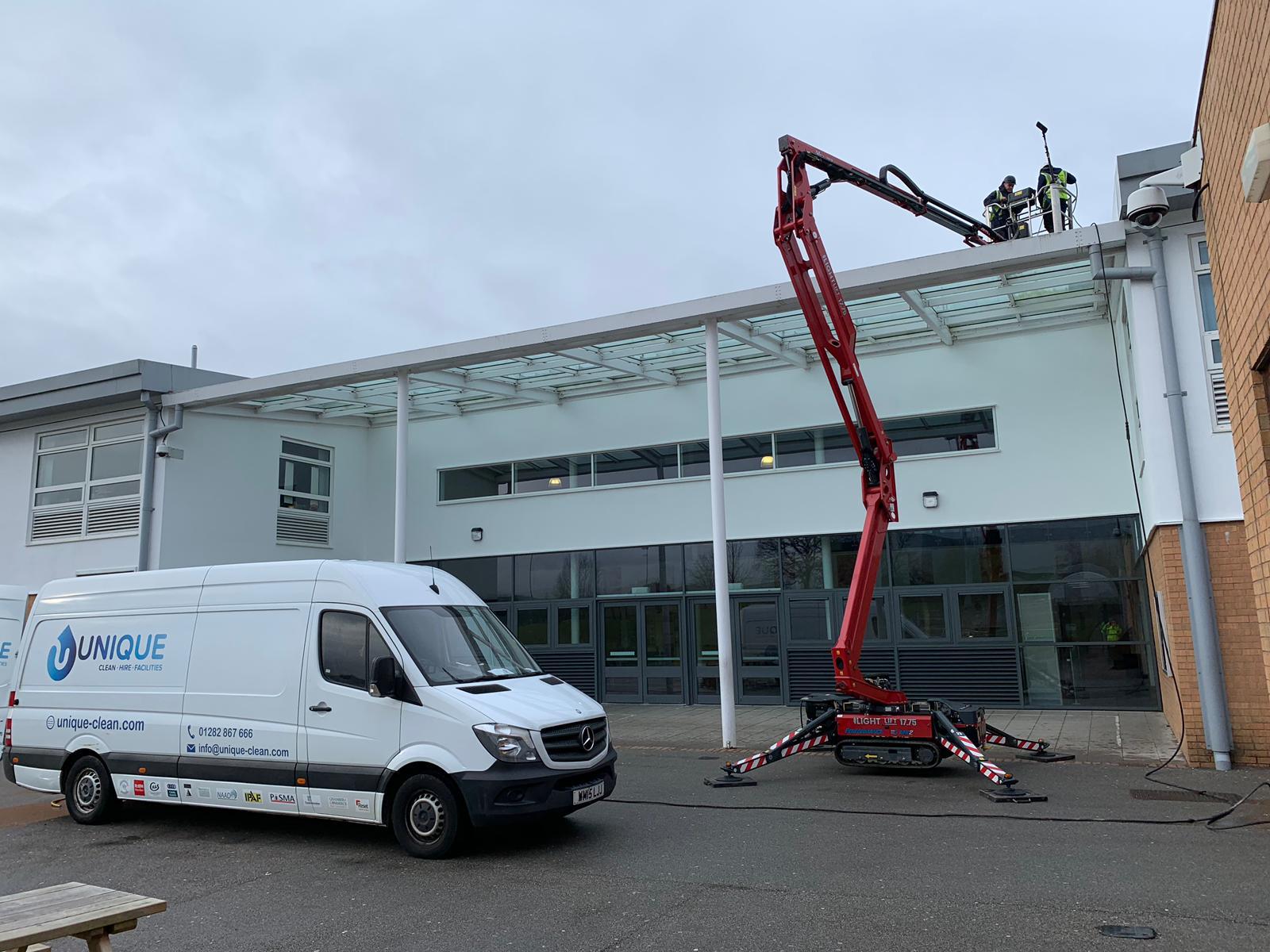 Metal canopies can often be found in commercial outfits such as retail parks, at factories or on industrial estates and are commonly made using cladded sheets, copper and aluminum. It’s important to use the right cleaning materials when cleaning down metal canopies as using excessive water or the wrong solution can lead to rust built up and damage.